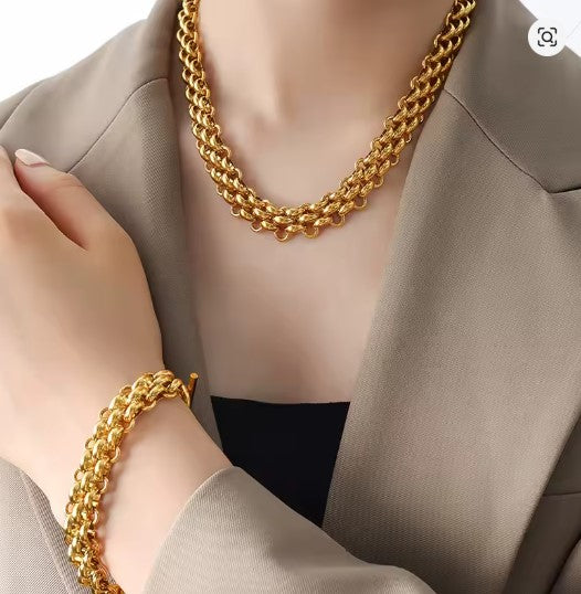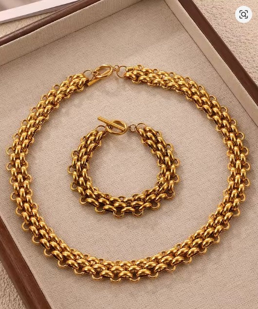 ✨ Ensemble Bracelet & Collier Doré en Acier Inoxydable 316L – L’éclat au quotidien